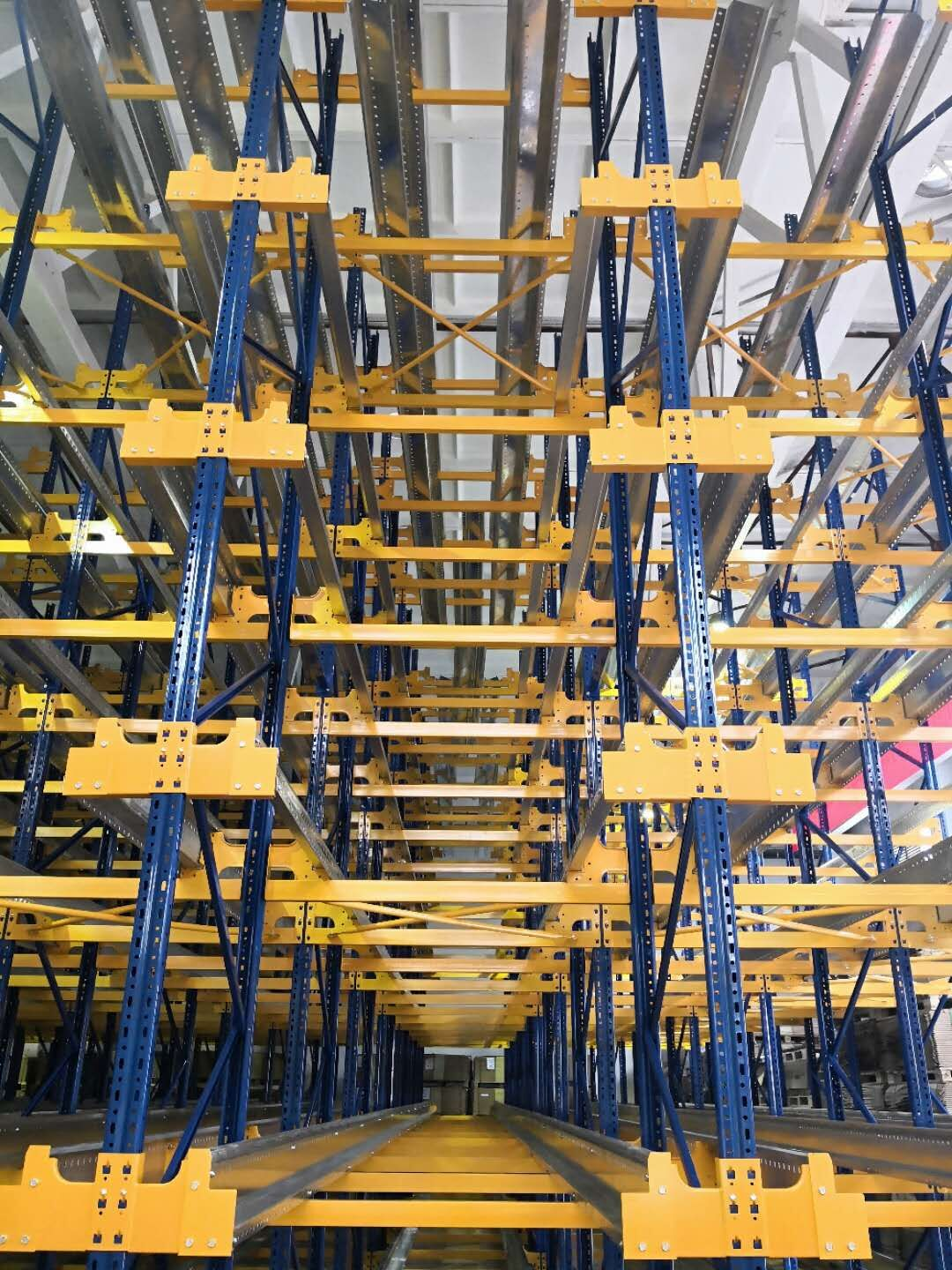 根據(jù)客戶各類貨物的特點(diǎn),有一部分原材料及成品的種類較多,但是此類貨物每類數(shù)量相對較少,另外還有部分貨物種類較少而每類數(shù)量較多。經(jīng)過雙方溝通交流,針對前一類貨物我們決定增補(bǔ)一部分橫梁貨架,可以實(shí)現(xiàn)貨物任意存??;針對后一類貨物,在貫通貨架和穿梭車貨架中,我們選擇了穿梭車貨架。貫通貨架和穿梭車貨架都是空間利用率極高的貨架類型(普通橫梁貨架空間利用率30%~35%,貫通貨架空間利用率60%~70%,而穿梭車貨架空間利用率可達(dá)80%),但是穿梭車貨架相對而言空間利用率更高。另外,穿梭車貨架作為一種半自動的貨架模式,操作更高效快捷,可以根據(jù)盤點(diǎn)、整理等指令,對軌道上的托盤貨物進(jìn)行整理和計數(shù),大大降低了管理成本,關(guān)鍵還保證了員工的安全。另外,澳弘電子作為一家業(yè)內(nèi)的知名大企業(yè),半自動化的穿梭車貨架也更能向外展示其充滿活力的企業(yè)形象,展示其實(shí)力。