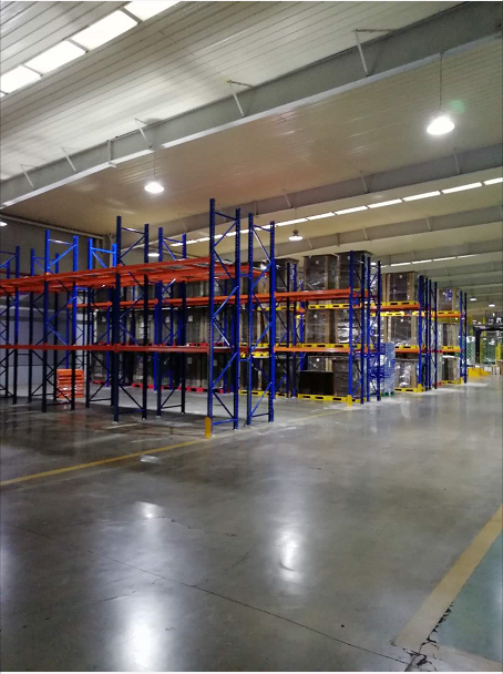 重型貨架采用90*68*2.0的立柱,120*50*1.5的橫梁,4.5米高,2層橫梁3層擺放,共計(jì)1704個(gè)貨位每層承載2噸,每個(gè)托盤承載1噸。簽訂合同18天后發(fā)貨,包裝用塑鋼帶打緊后用纏繞膜保護(hù),防止貨物傾斜或碰傷,兩天后到達(dá)客戶現(xiàn)場,安裝共計(jì)6天完成,安裝完畢對方驗(yàn)收。